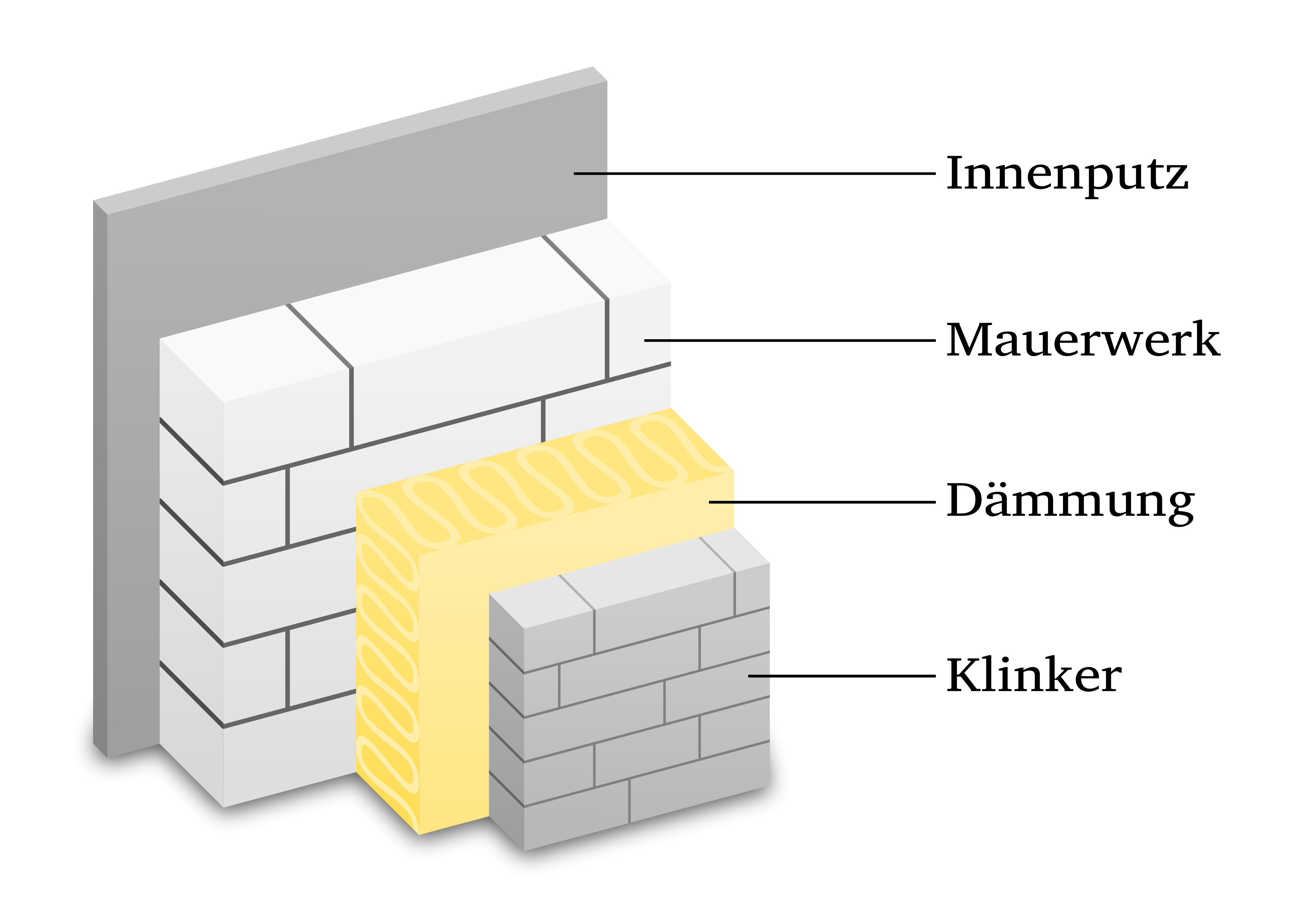 So sieht der Wandaufbau moderner Immobilien in der Regel aus.